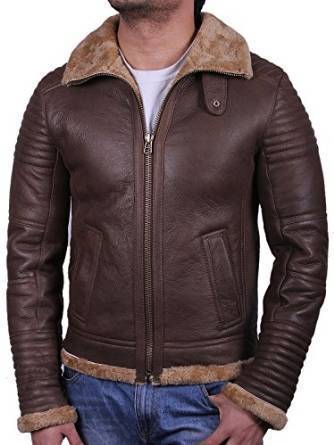 HANDMADE MEN'S FLEECE BROWN LEATHER JACKET , MEN SHERLING LEATHER JACKETS