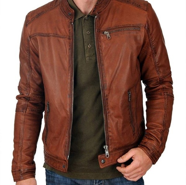 Men's Fashion Real Lambskin Brown Tan Leather Waxed Biker Motorcycle Jacket