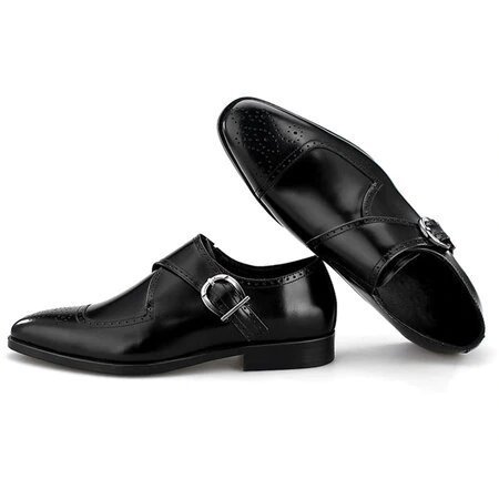 New Handmade Men's Vintage Side Buckle Black Leather Dress Shoes