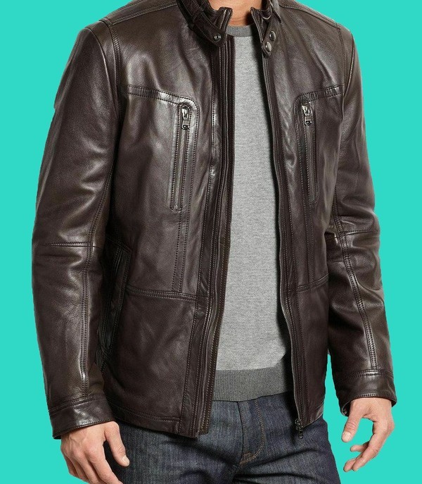 Men's Brown Genuine Lambskin Leather Jacket Biker Motorcycle Jacket