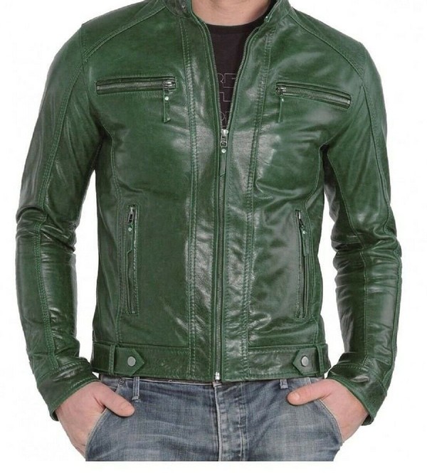 Men LeatherJacket 100% Genuine Biker Motorcycle Green Leather Jacket