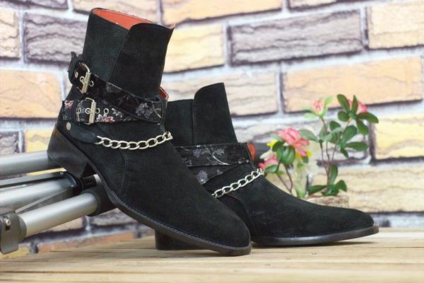 New Handmade Leather Men Black Suede Jodhpur Ankle High Boot, Men Stylish Steel