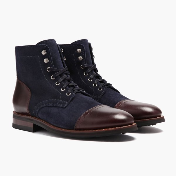 High Ankle Two Tone Rounded Cap Toe Lace Up Premium Leather Men Party Wear Shoes