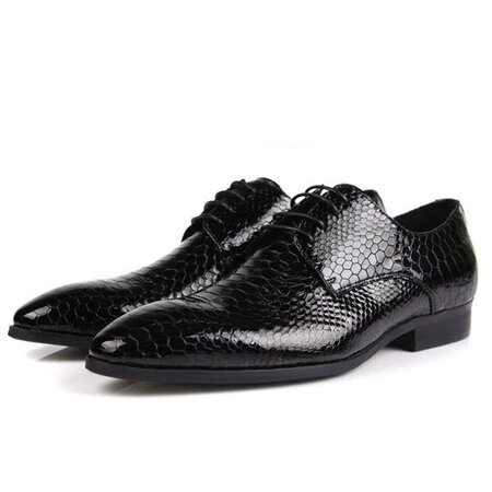 New Handmade Men's Black Snake-Skin Texture Dress Derby Shoes
