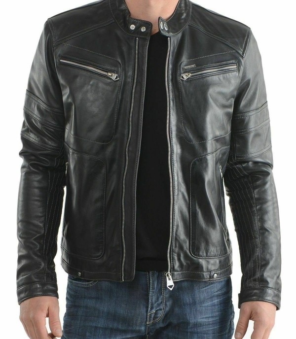 Mens Leather Jacket Motorcycle Biker Real Lambskin Biker