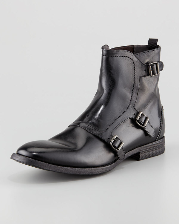 Handcrafted Mens Fashion Triple Monk Closure Ankle Boots, Men Leather Boots