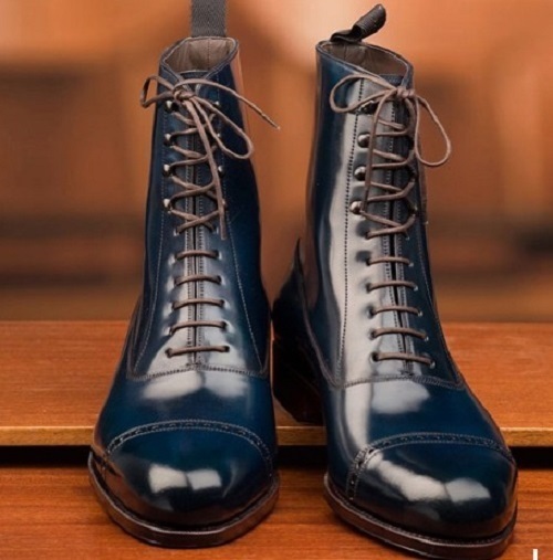 New Men,s Handmade Blue Ankle Boot leather boots, Men ankle boot leather boot,