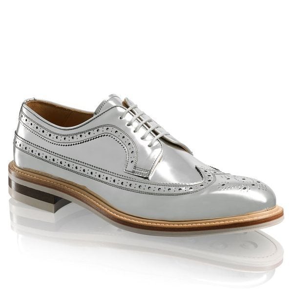Oxford Wing Tip Brogue Toe White Formal Dress Handmade Leather Lace up Shoes