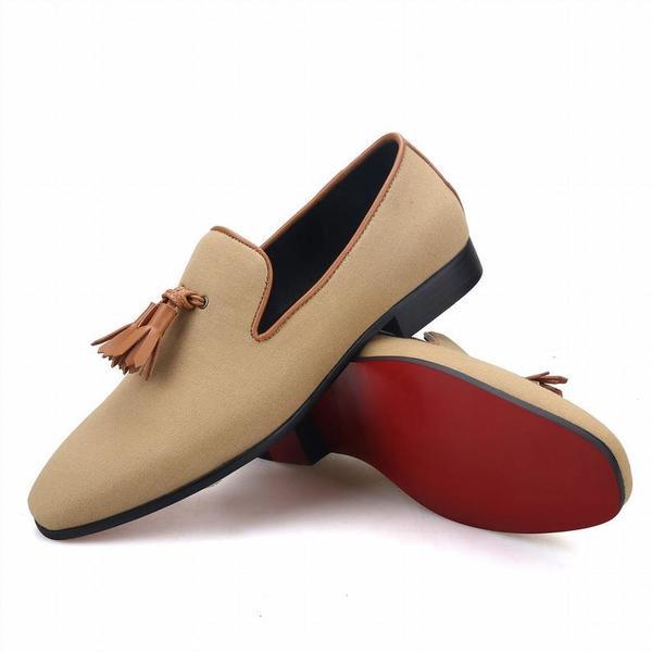 New Handmade Men's Brown Pompon Khaki Casual Loafers Shoes